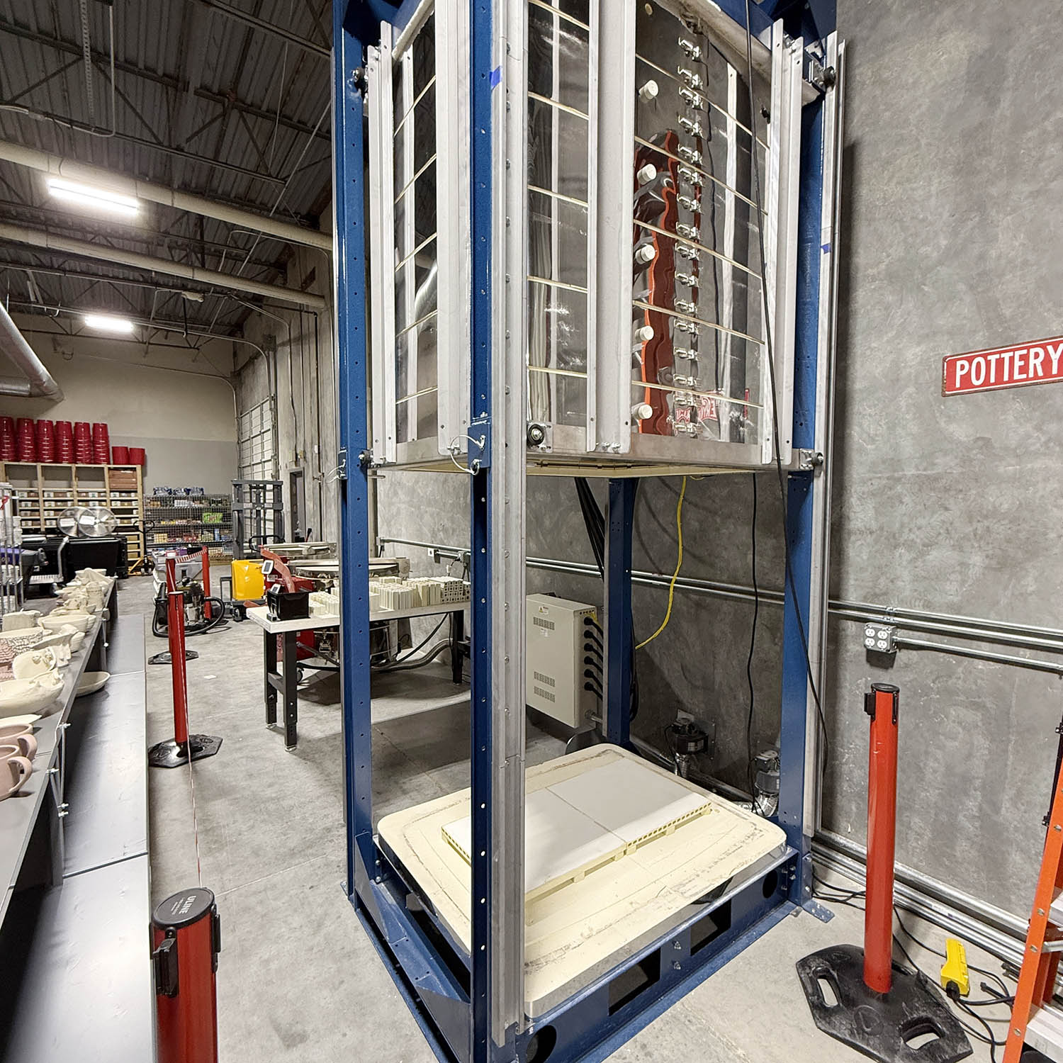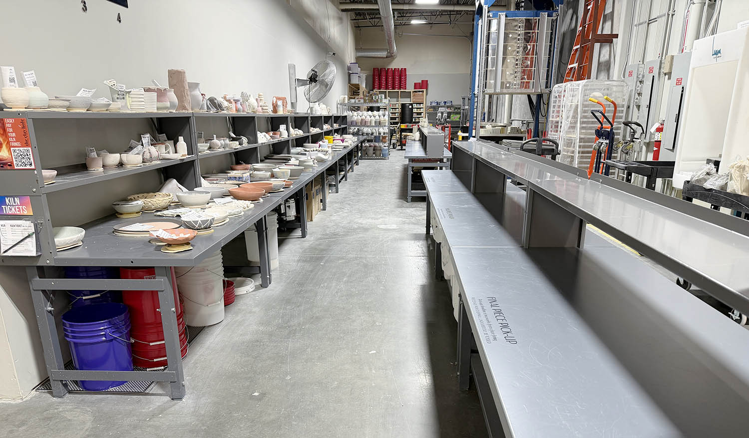 We have two large kilns and one GIANT bell lift kiln. That means we don't wait weeks to fire your work. Most pottery heads into the kilns within a few days!