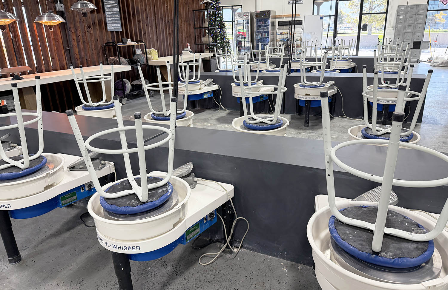 We've got 29 pottery wheels with custom built ware platforms to keep your pieces on while you work.