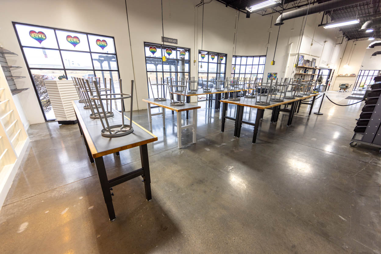 This is where we will host all our non-pottery art workshops, such as stained glass, jewelry making, tie dye, terrariums, and dozens more epic and fun art forms.